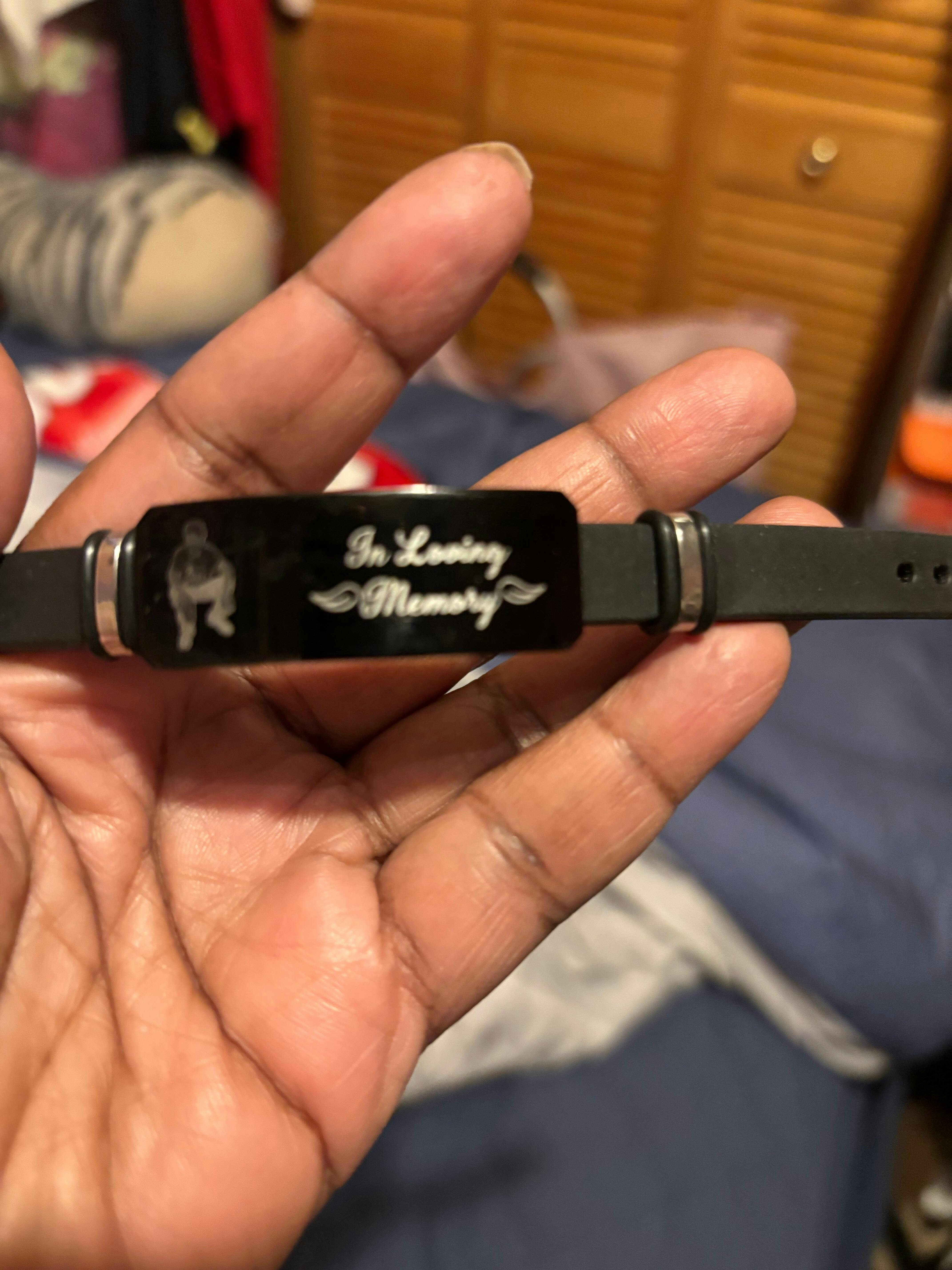 I love my bracelet, the exact photo I sent was used and it looks amazing. Fast shipping.