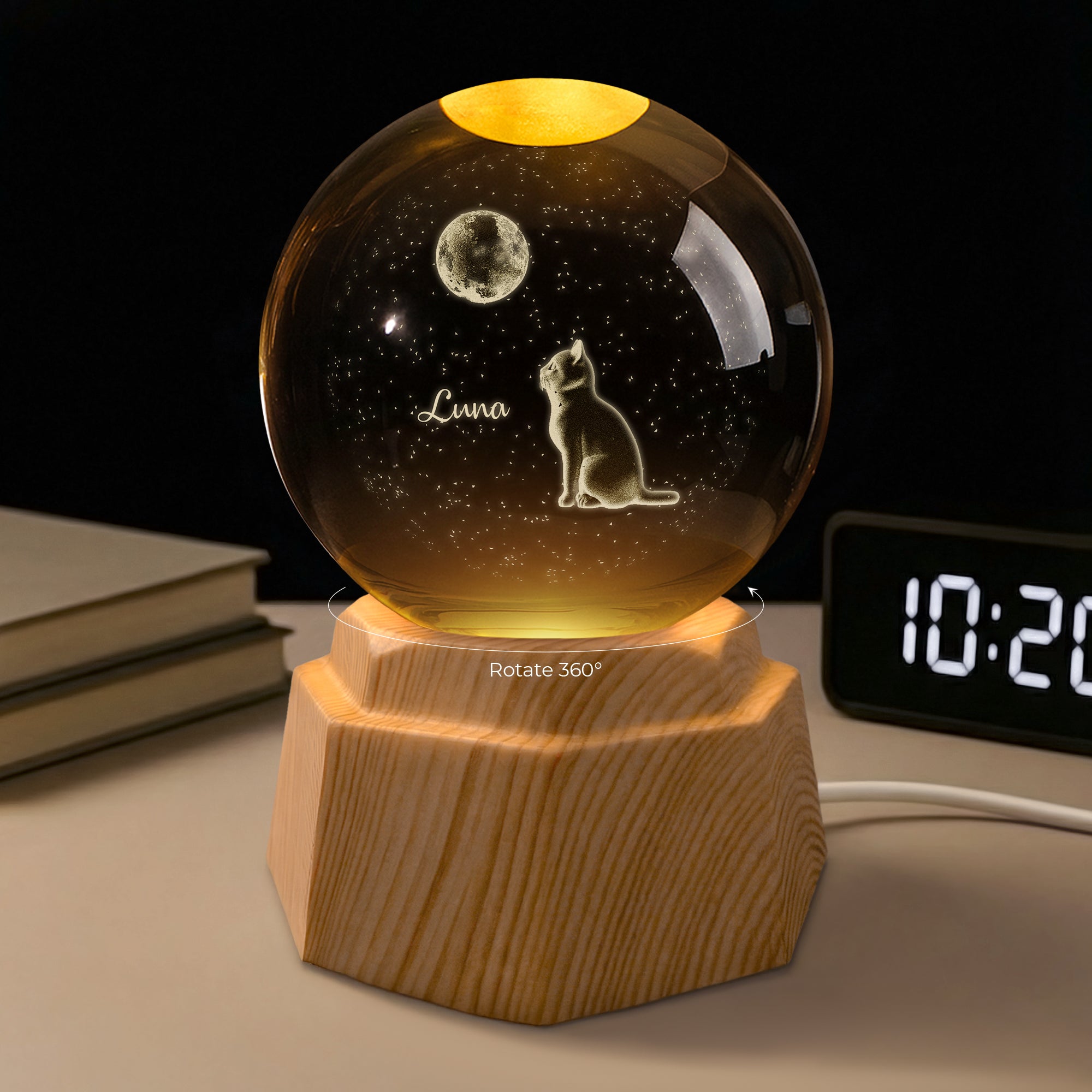 3D Crystal Ball Lamp - Personalized Gifts for Cat Lovers