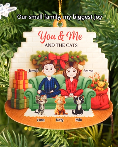 [3D Printing Effect] Custom Acrylic Xmas Ornaments - Gifts for Couples with Cats