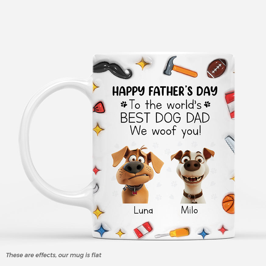 [3D Printing Effect] Custom Father's Day Mugs - Dog Dad Presents