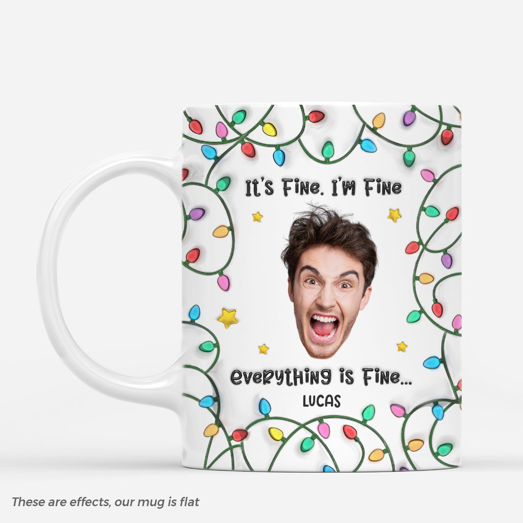 [3D Printing Effect] Custom Photo Christmas Gifts - Funny It's Fine I'm Fine Everything Is Fine Mug