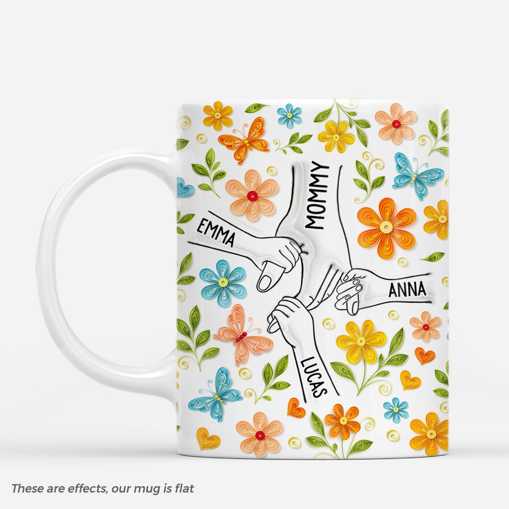 [3D Printing Effect] Floral Mug with Names - Personalized Gifts for Mom/Grandma