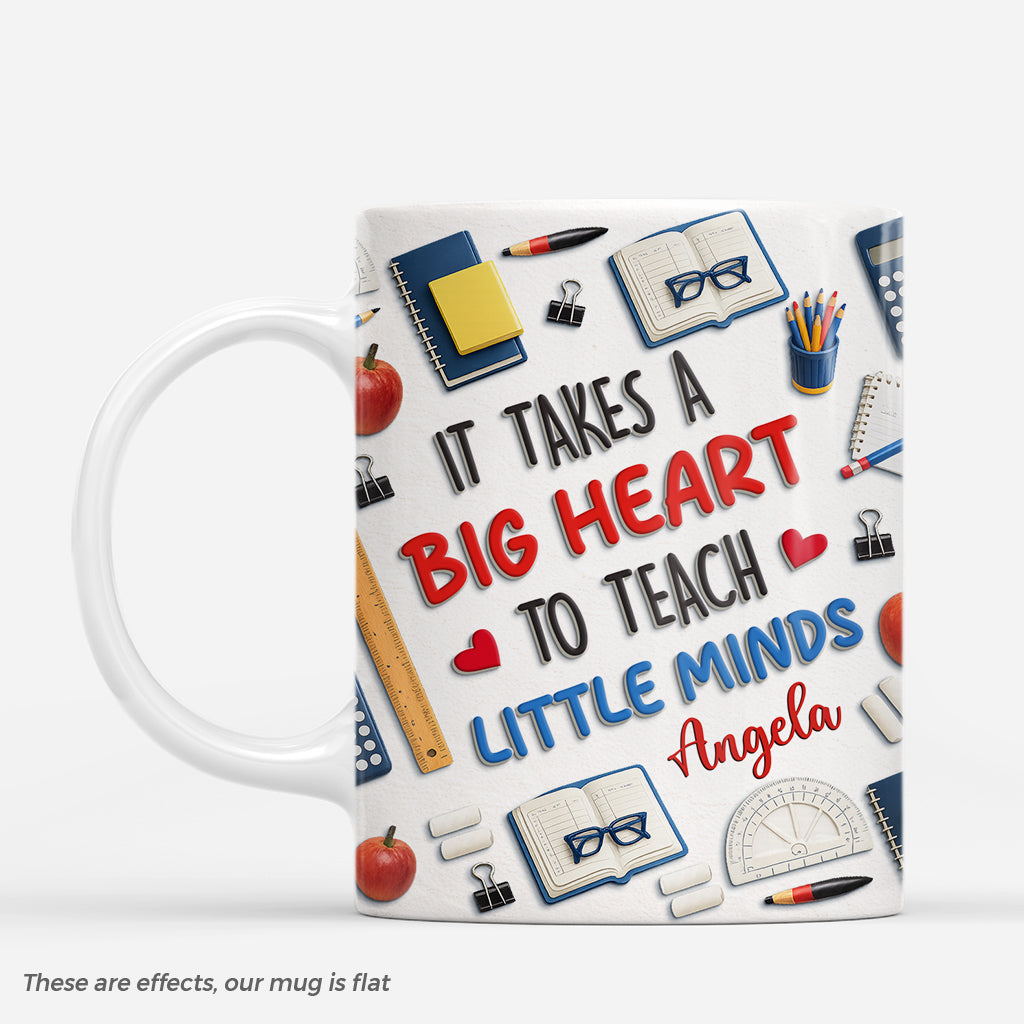[3D Printing Effect] It Takes A Big Heart To Teach Little Minds Mug - Custom Teacher Gifts