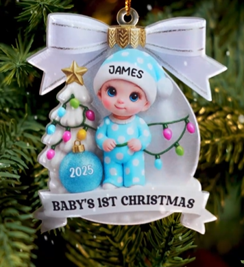 These personalized Christmas ornaments make the perfect keepsake to mark your baby’s very first Christmas. Each acrylic ornament features a crystal-clear 3D design that brings your chosen details to life — from your baby’s name to adorable character illustrations. You can customize the baby design and add dates to create a timeless memento you’ll treasure year after year. Ideal as a thoughtful gift for new parents, grandparents, or baby showers, this ornament captures the magic of the season and the joy of a new beginning.