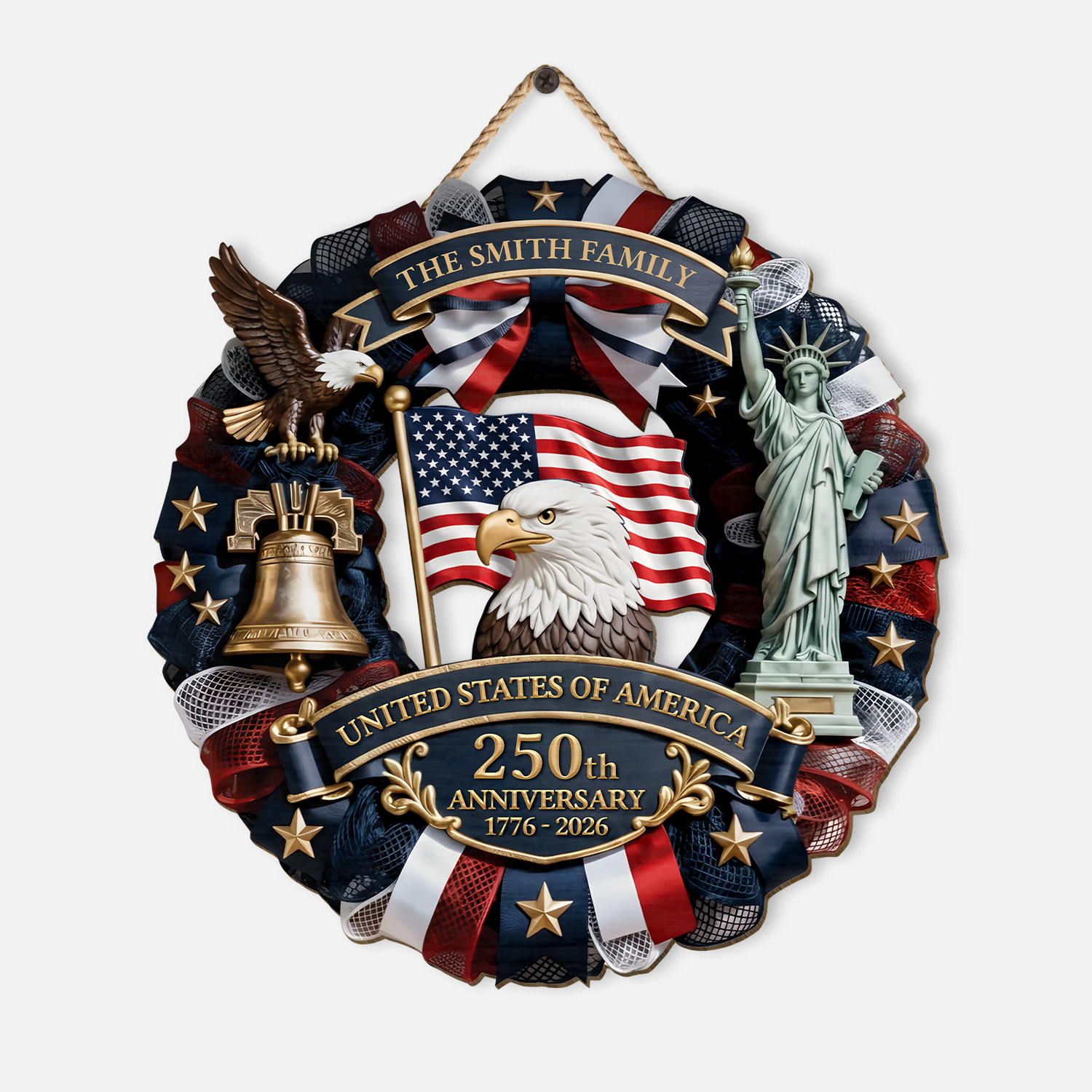 [3D Printing Effect] Wooden Family Name Signs - Personalized America 250th Anniversary Wood Sign - 4th of July Gifts