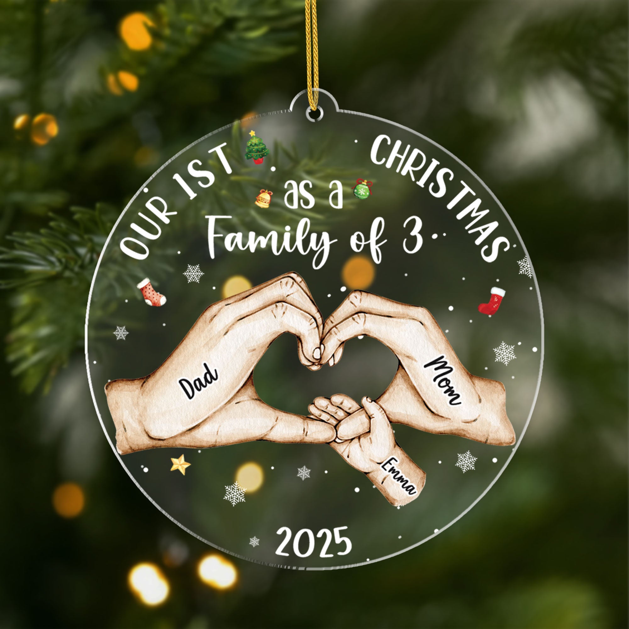 Acrylic First Christmas as a Family of 3 Ornament - Custom Family Gifts