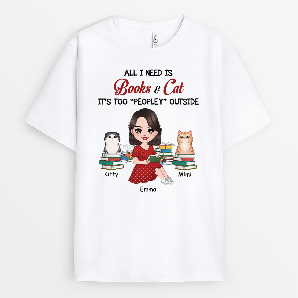 All I Need Is Book & Cats - Personalised Cat T Shirt for Her