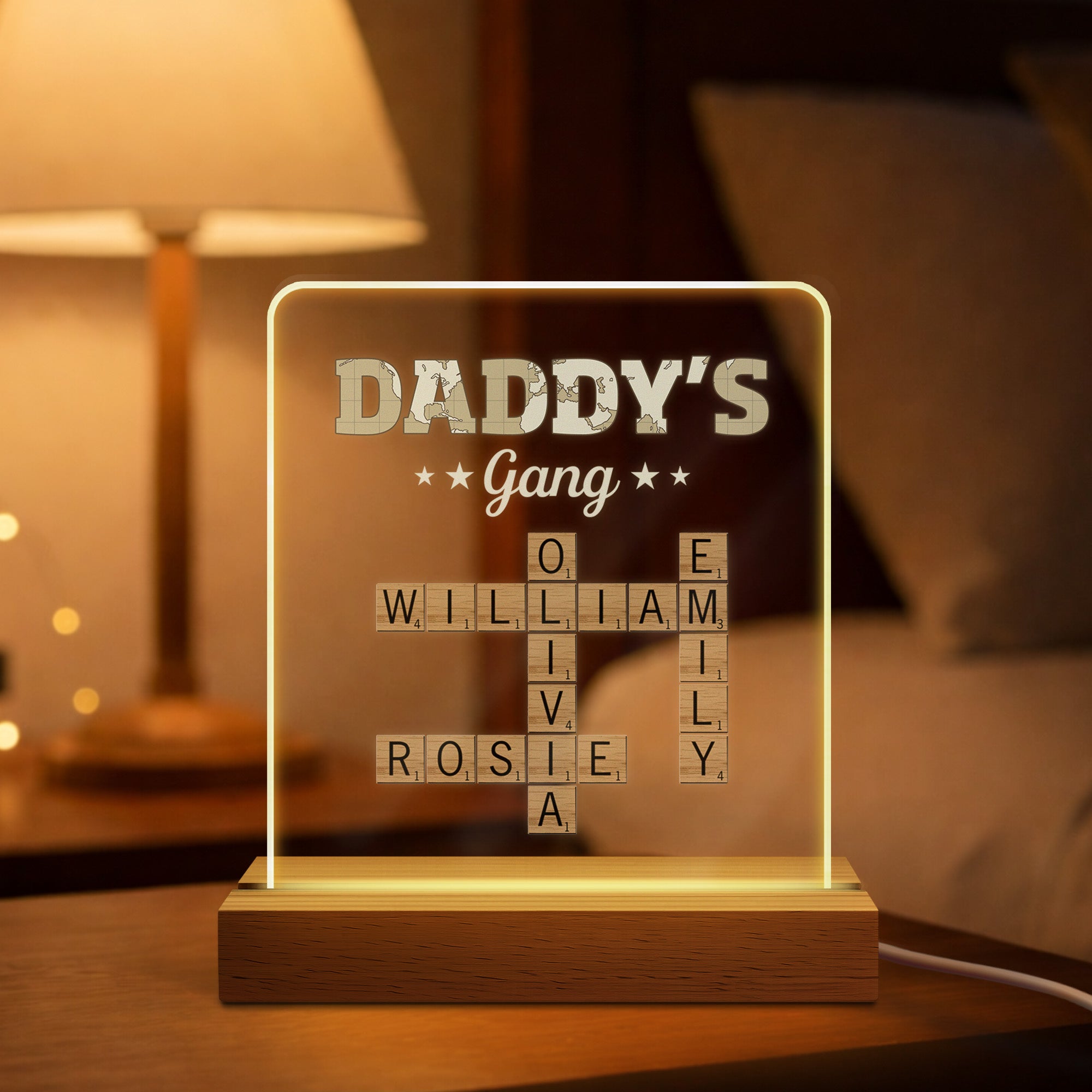 Crossword Puzzle Art Night Light - Custom Gifts for Grandpa/Grandma/Mom/Dad