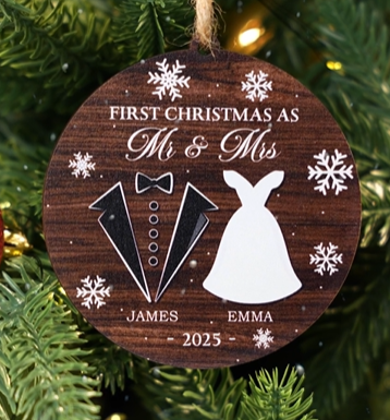 Custom 1 Layered Wood Ornament - First Christmas Married Ornament