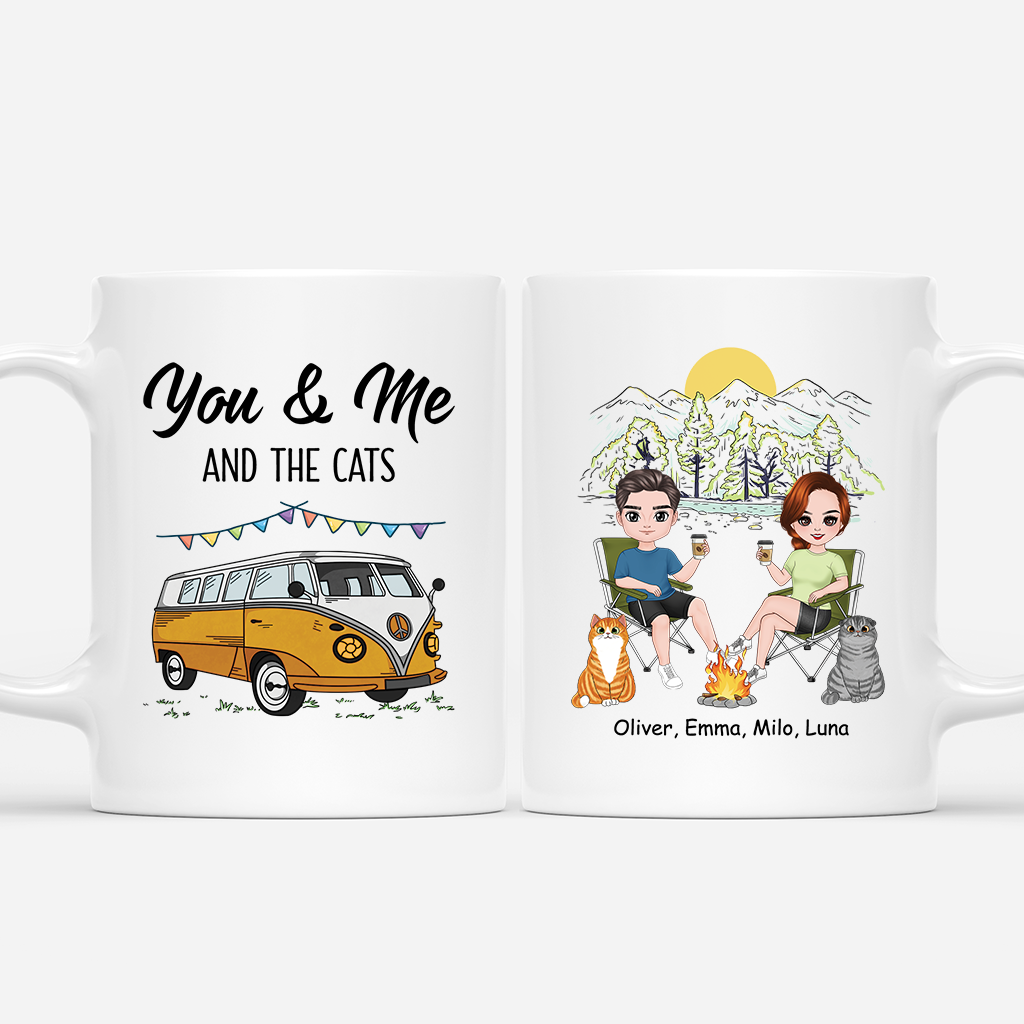 Custom Camping Mugs for Couples - You Me and The Cat Mug
