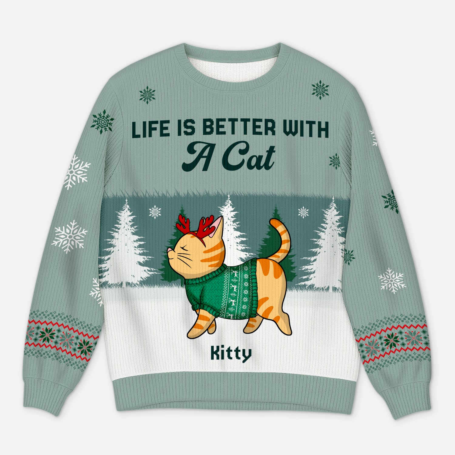 Custom Cat Ugly Christmas Sweater - Life Is Better With a Cat