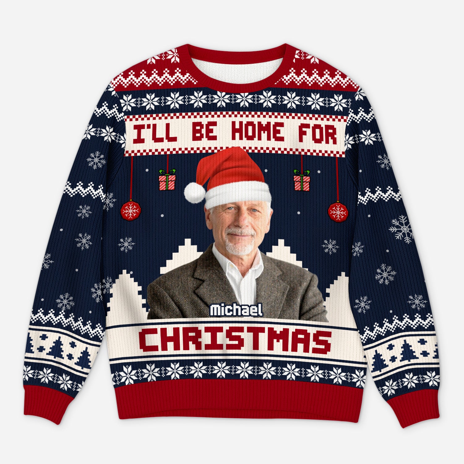 Custom Photo Ugly Christmas Sweater - I'll Be Home for Christmas