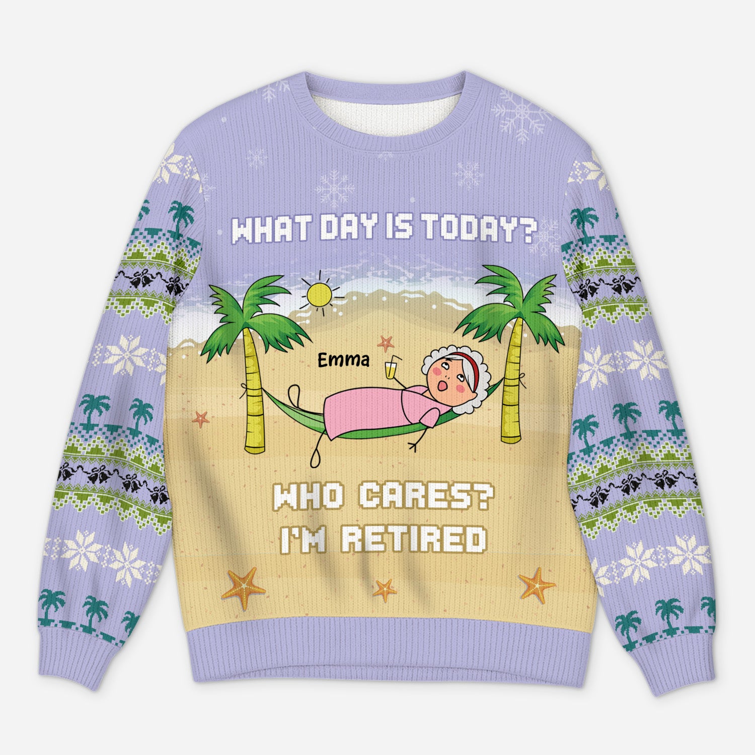 Add humor and holiday cheer to any celebration with our custom ugly Christmas sweater, the perfect pick for retirees who’ve finally earned the right not to care what day it is!