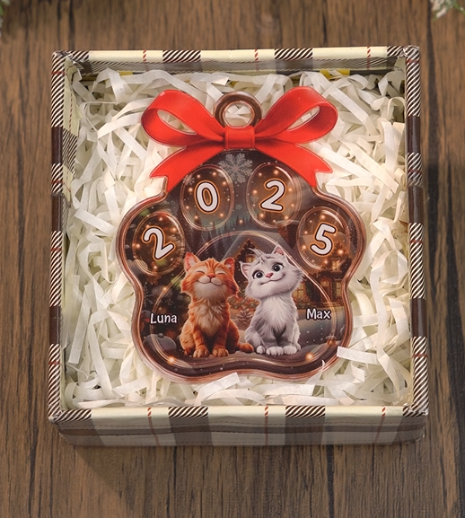 Custom Xmas Gifts for Cat Lovers - Acrylic Paw Print Ornament
