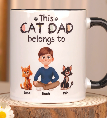 This custom cat and owner mug is a daily reminder of the love shared with your cat. Personalize with names and detailed character illustrations for both the owner and the kitty, choosing from a wide variety of breeds, fur colors, hairstyles, and outfits. Made from premium ceramic, it’s microwave- and dishwasher-safe for easy use. Perfect as unique gifts for cat moms, this cat mom mug makes a thoughtful present for birthdays, Christmas, Mother’s Day, or just to surprise a cat-loving friend.