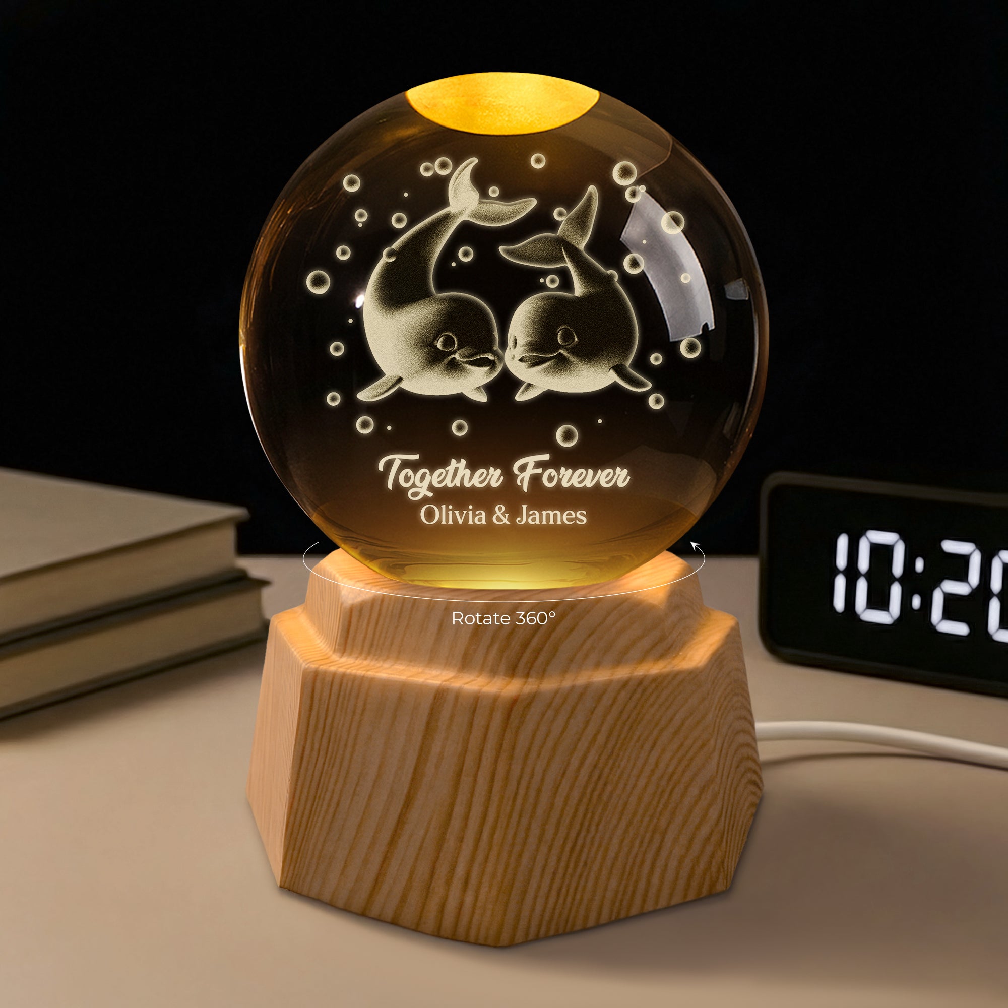 Dolphin 3D Crystal Ball Lamp - Personalized Gifts for a Couple