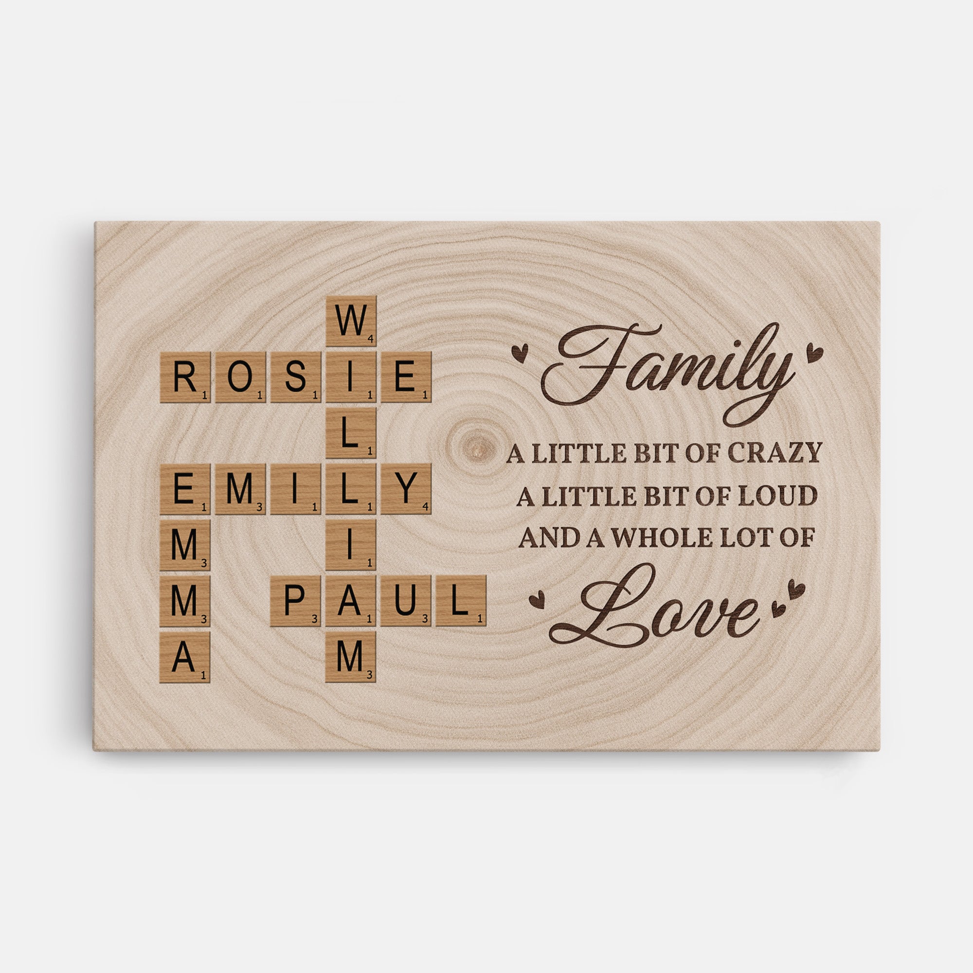 Family A Little Bit of Crazy Wall Art - Custom Family Crossword Canvas