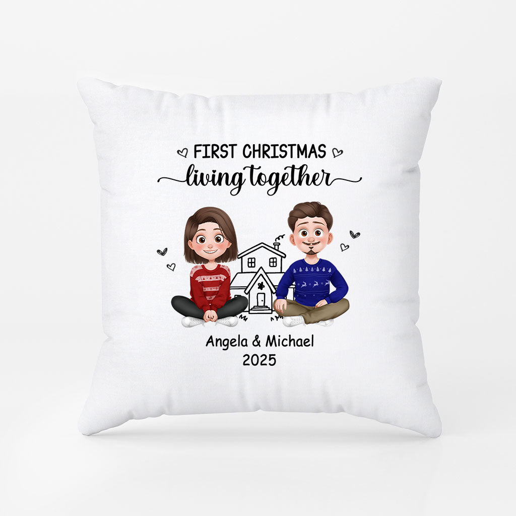 First Christmas Living Together Pillow - Personalized Couple Gifts