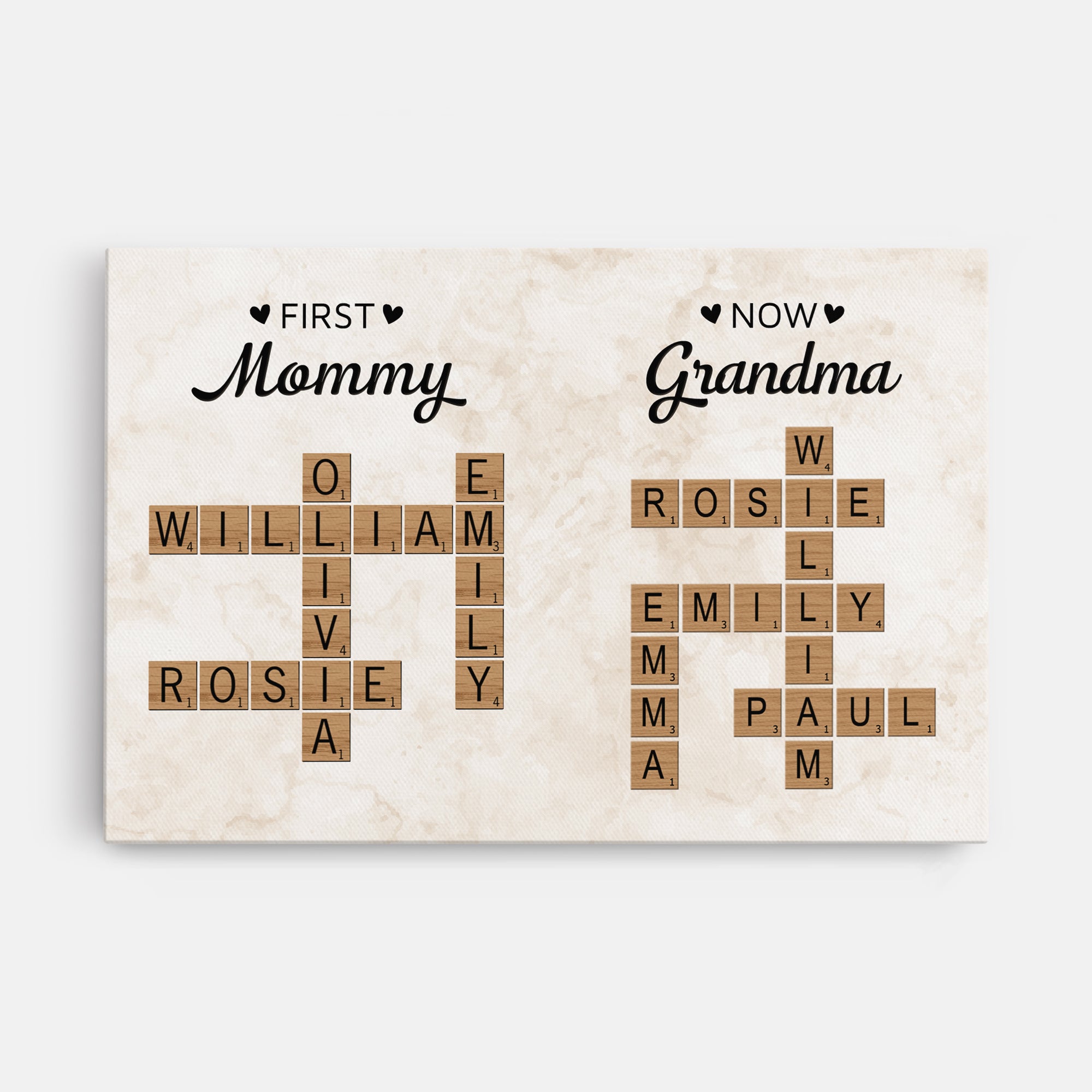 First Mom Now Grandma Canvas - Custom Crossword Name Wall Art