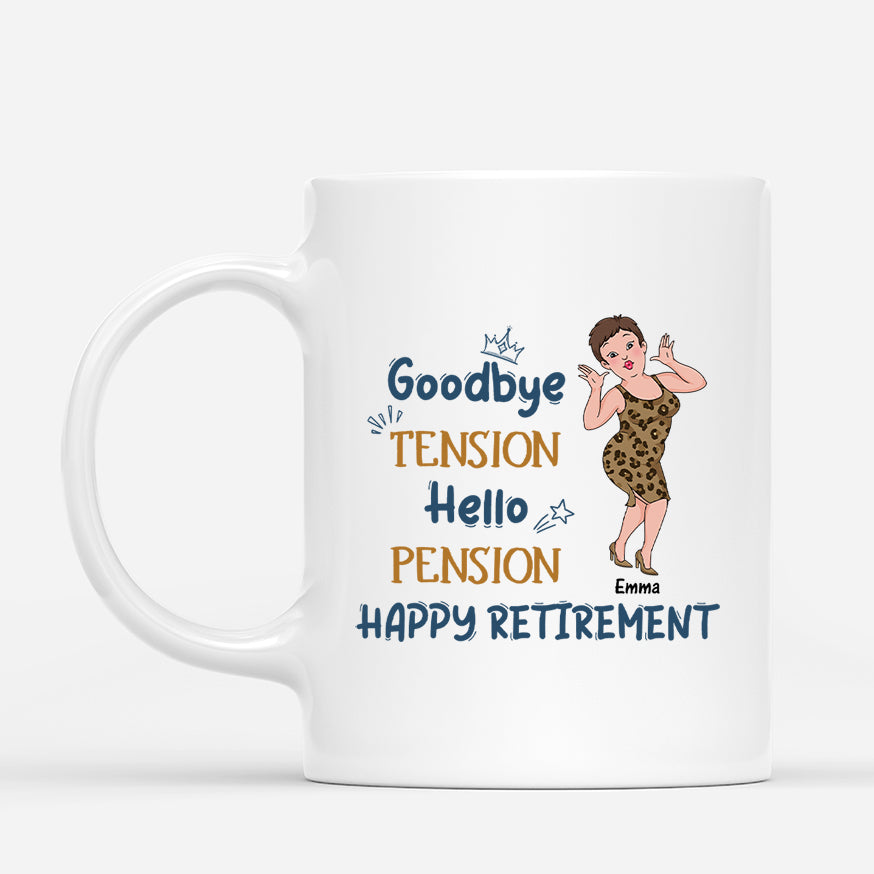 Goodbye Tension Hello Pension Happy Retirement Mug Personalized Mug For Her