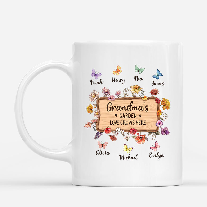 Grandma's Garden Love Grows Here Mug - Personalized Gifts for Grandma/Mom