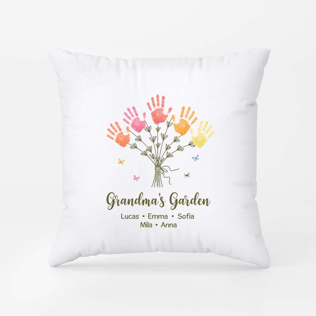 Grandma's Garden Pillow with Handprint - Custom Gifts for Grandma/Mom