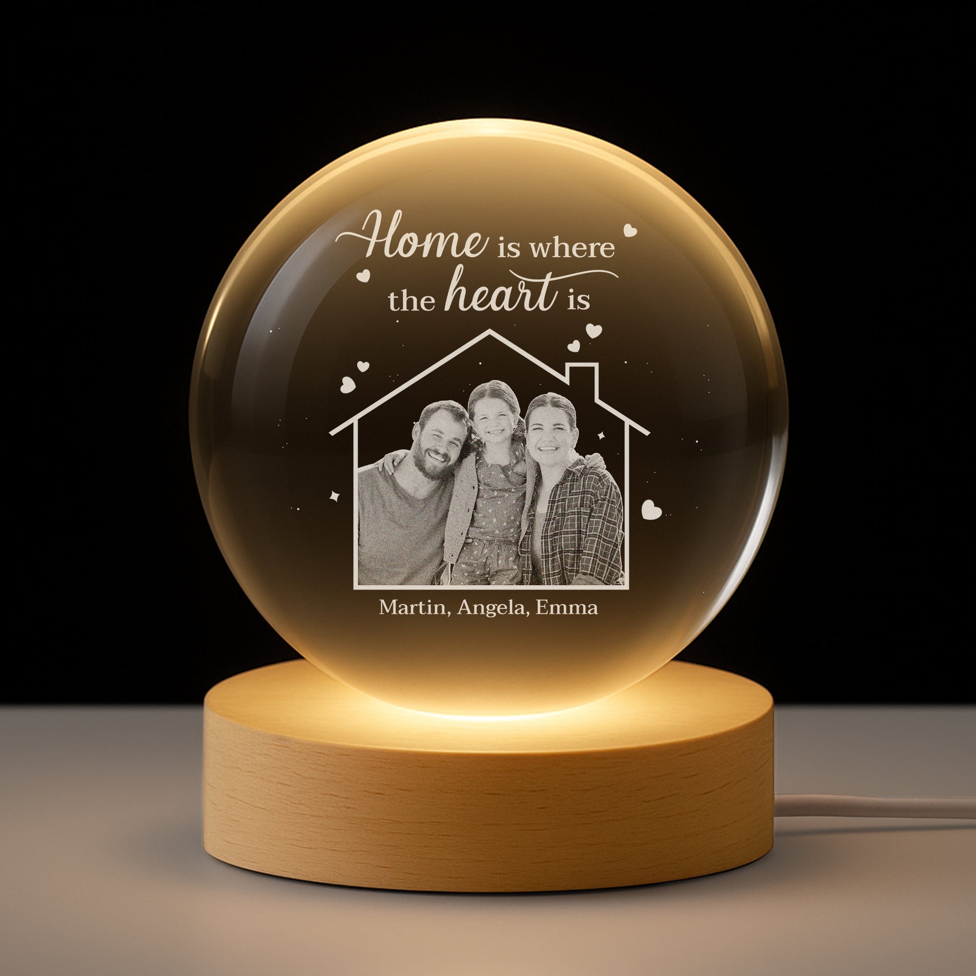 Home Is Where The Heart Is Photo Crystal Ball Lamp - Custom Gifts for Couples