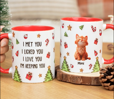 This personalized Christmas mug brings festive cheer and feline charm together in one thoughtful gift. Customize it with your cat’s name and unique design—choose from a variety of breeds, fur colors, and poses to make it look just like your furry friend. Crafted from high-quality ceramic, it’s microwave and dishwasher safe, perfect for hot cocoa, coffee, or tea during those chilly winter nights. Ideal for cat moms, dads, or friends who adore their pets, this cat Christmas mug makes one of the best custom gifts for cat lovers at Christmas.