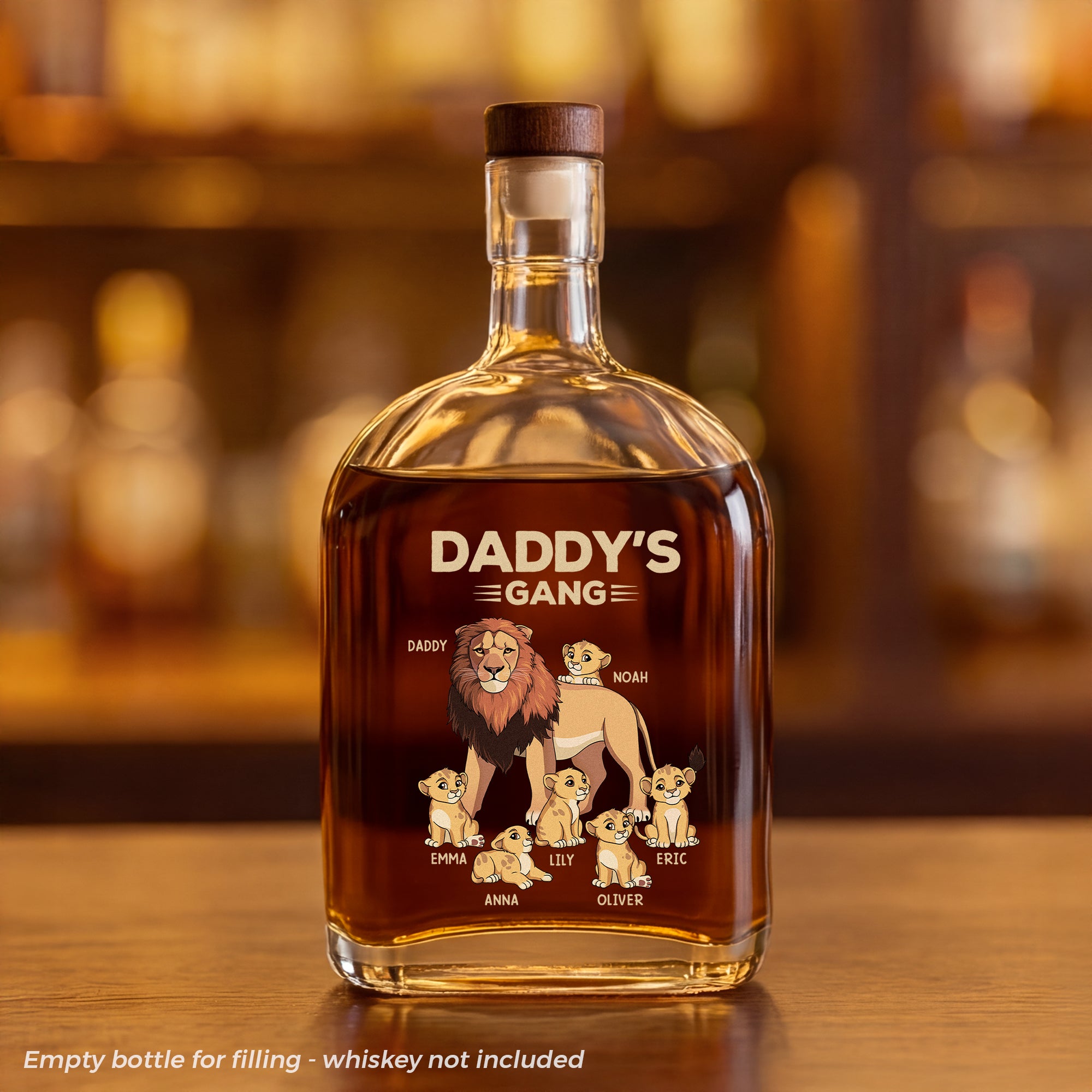 Lion Daddy Gang Whiskey Bottle - Custom Gifts for Dad/Grandpa
