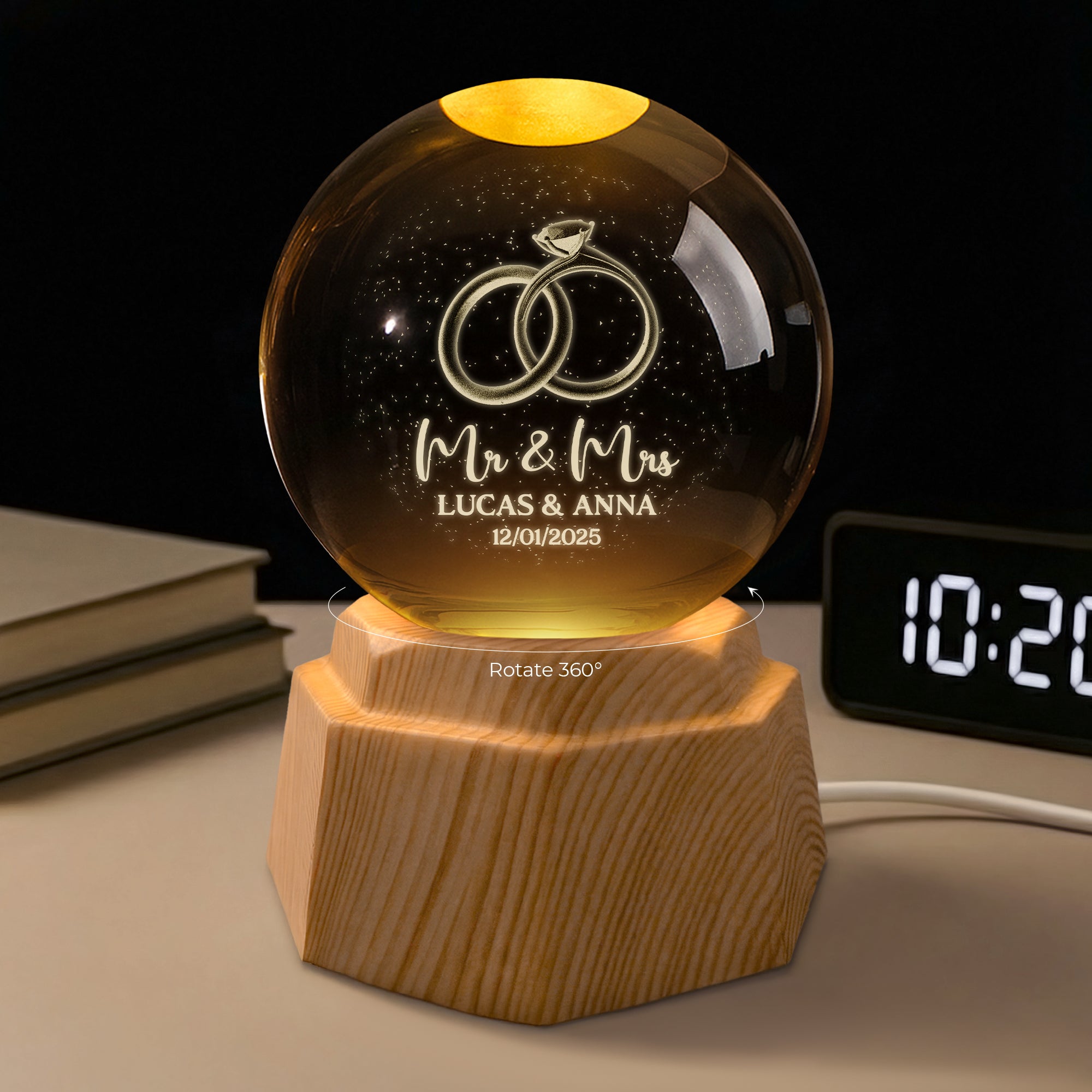 Mr and Mrs 3D Crystal Ball Lamp - Custom Gifts for Married Couples