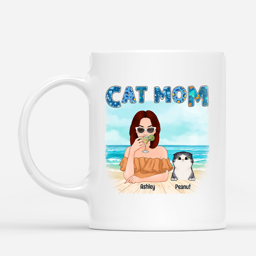 Personalized Cat Mom Mug - Beach Themed Gifts For Her