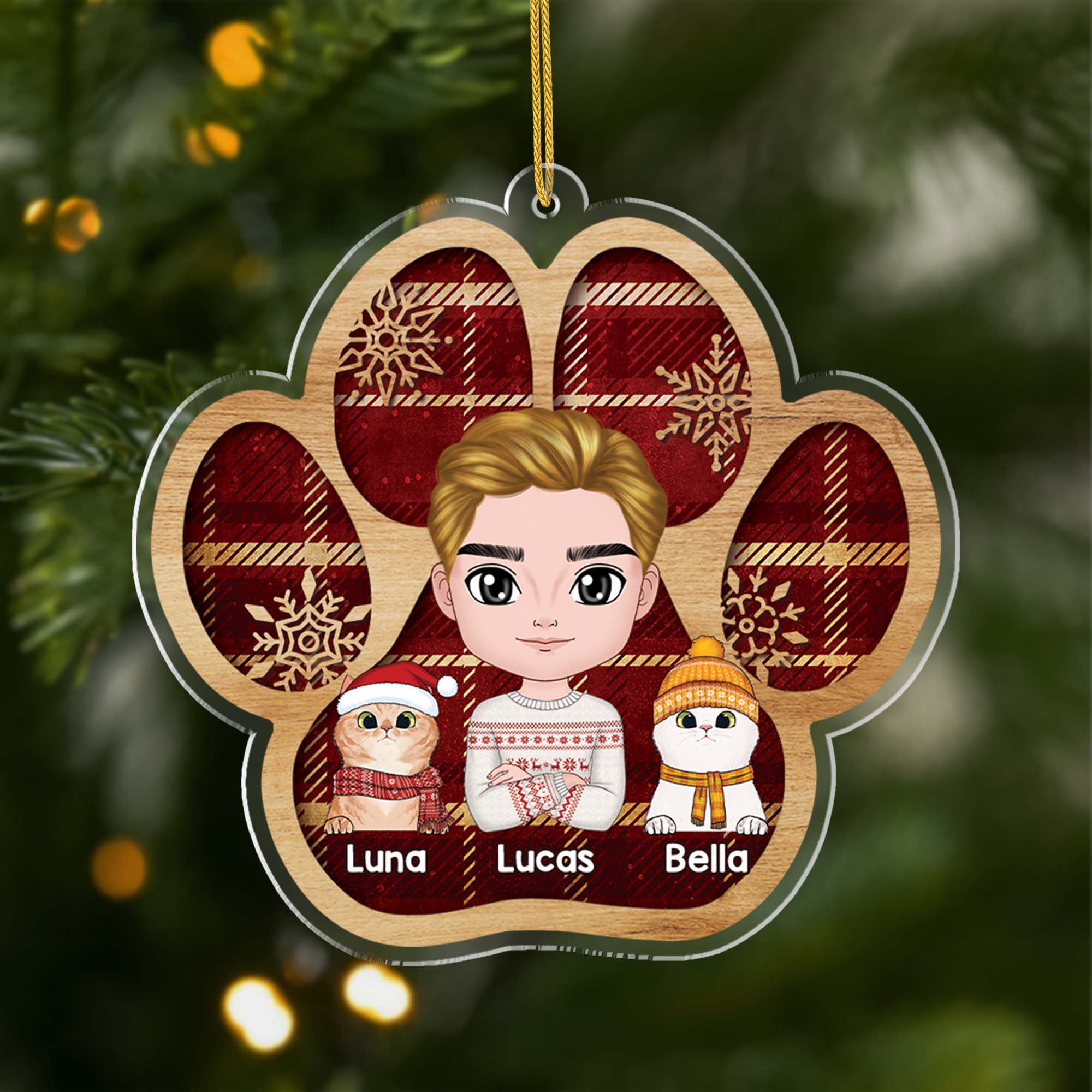 This paw print ornament makes a unique addition to any Christmas tree, showcasing the love between a cat owner and their pet. Personalize it with your names, character illustrations, or a heartfelt message to create a meaningful keepsake. Made from premium acrylic, it’s lightweight, durable, and designed to last for many holiday seasons. Whether for your own tree or as a thoughtful gift, these personalized Christmas ornaments are perfect for cat dads at Christmas, birthdays, or as a surprise token of appreciation.