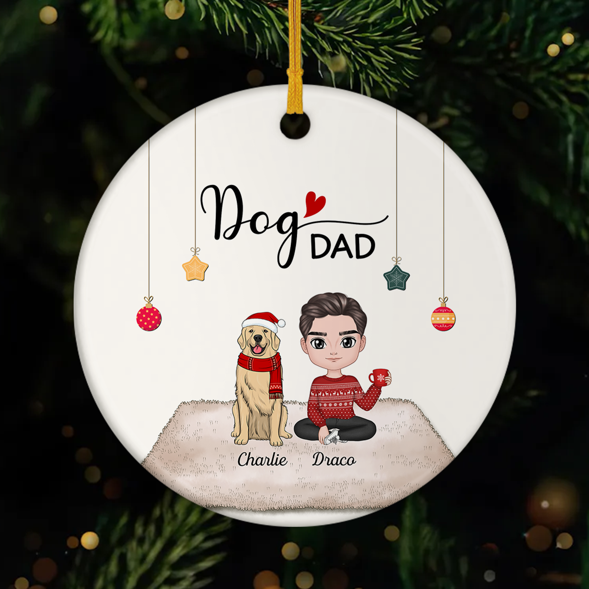 Personalized Dog Dad Christmas Ceramic Ornaments