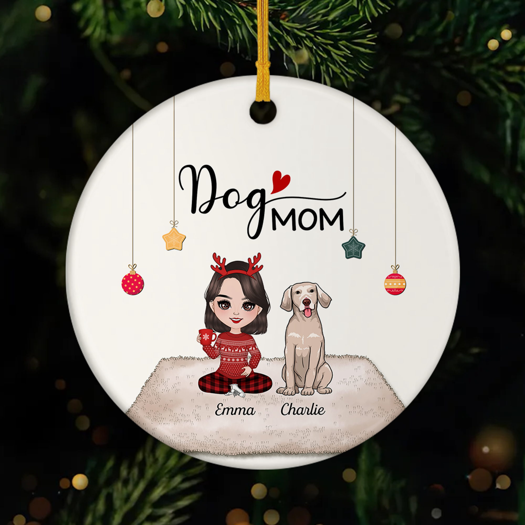 Personalized Dog Mom Gifts - Ceramic Christmas Ornaments