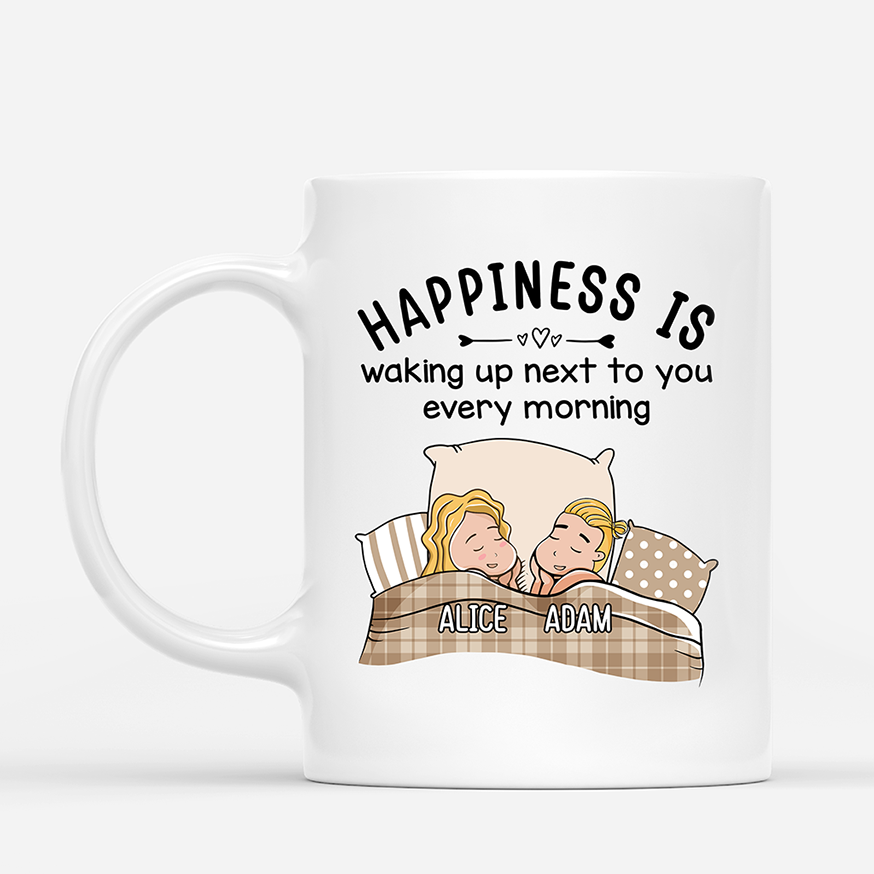 Personalized Couple Mugs - Happiness Is Waking Up Next To You