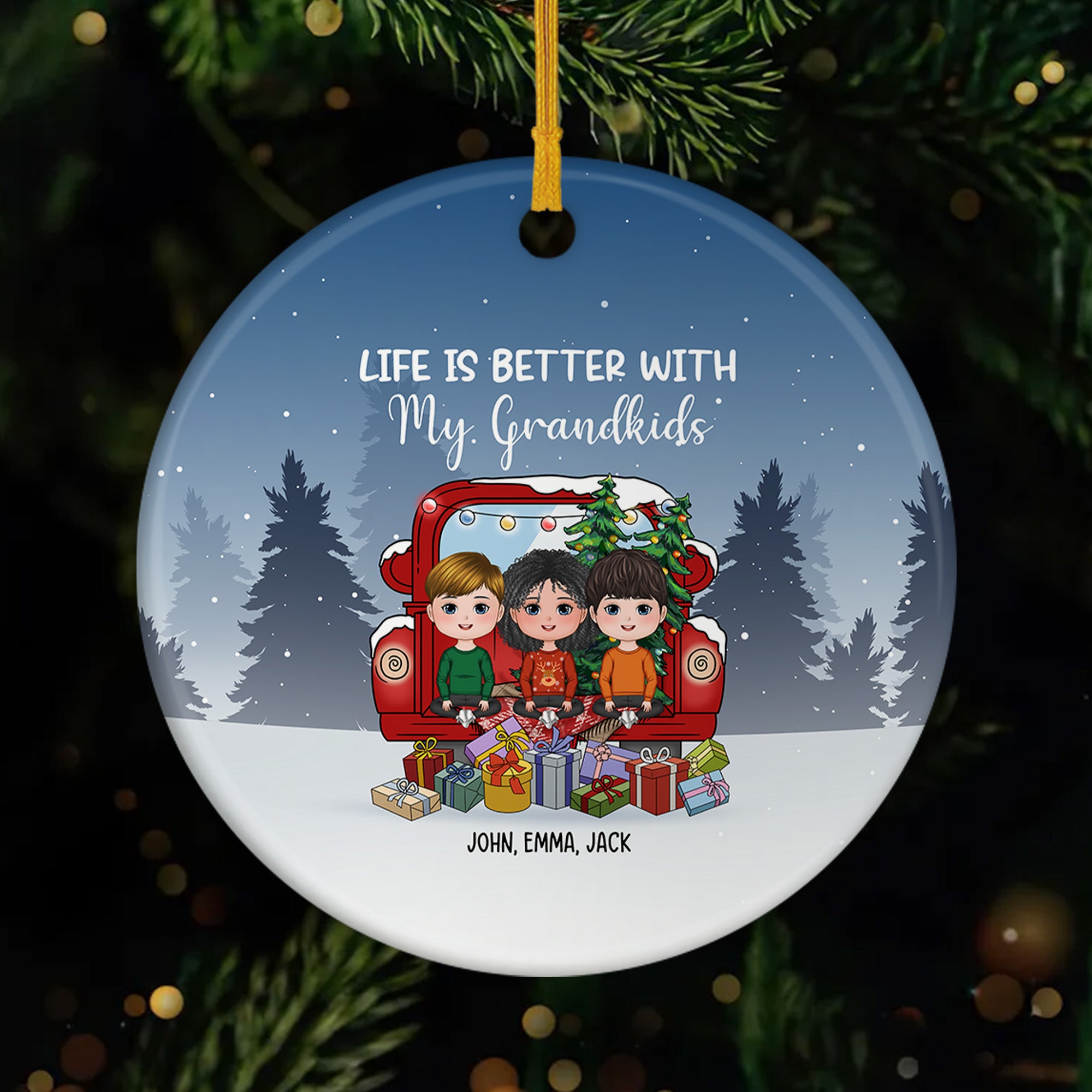 Personalized Life Is Better With My Grandkids Christmas Ceramic Ornaments