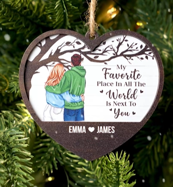 Personalized 2 Layers Wood Ornament for Couple - My Favorite Place