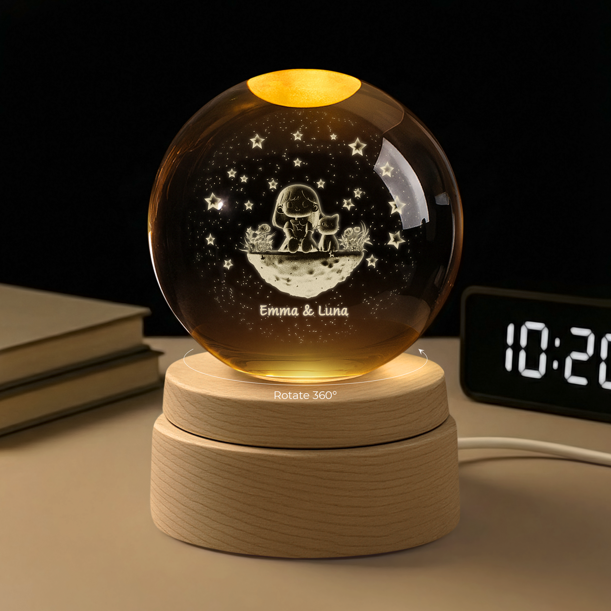 Personalized 3D Crystal Ball Lamp - Gifts for Dog/Cat Lovers