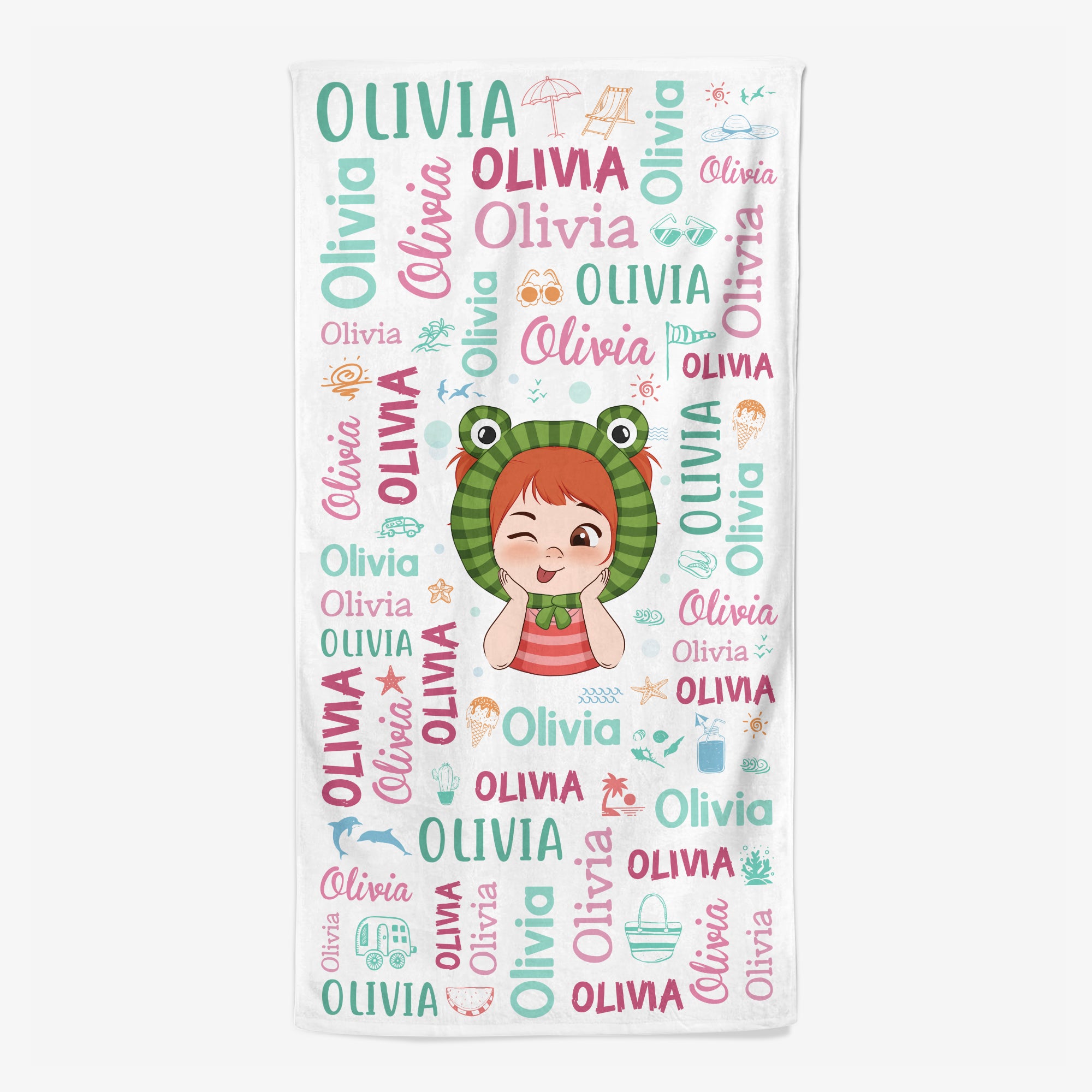 Make every beach day brighter with our personalized beach towels for kids, customized with names and fun character illustrations.