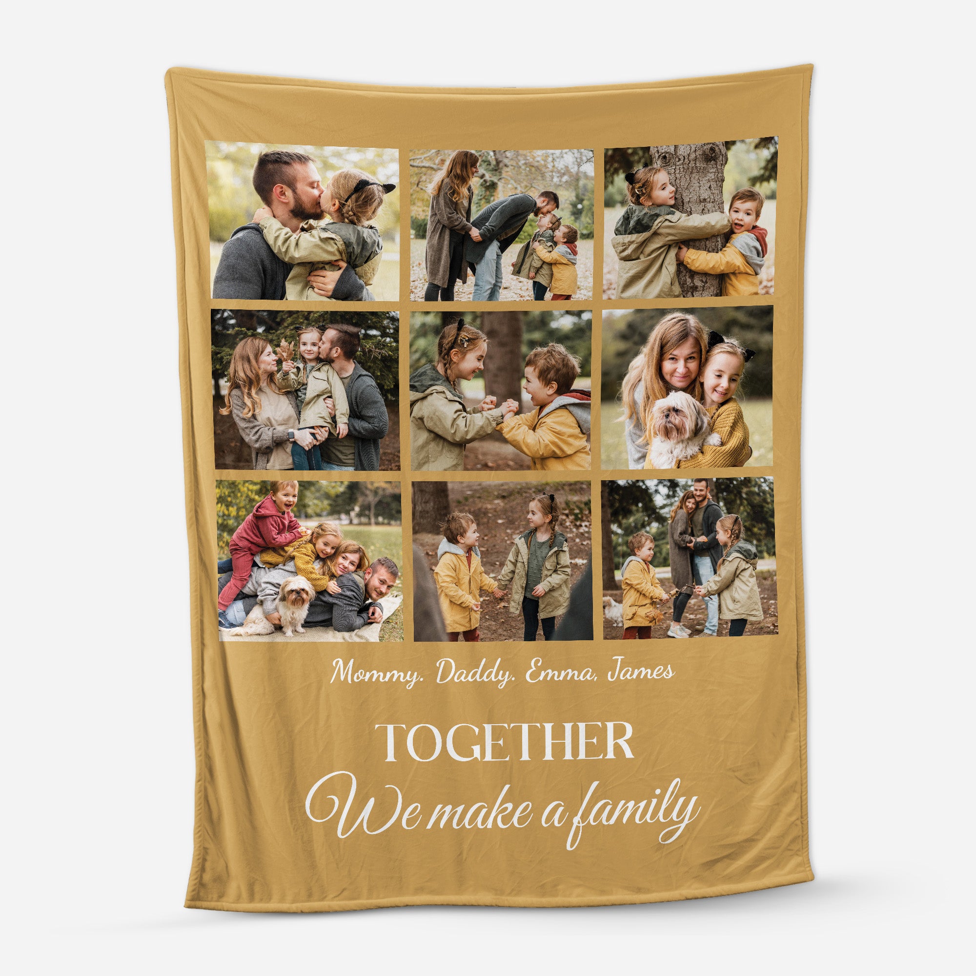 Wrap your loved ones in warmth and memories with our personalized blankets with photos, beautifully designed with the quote “Together We Make a Family.”