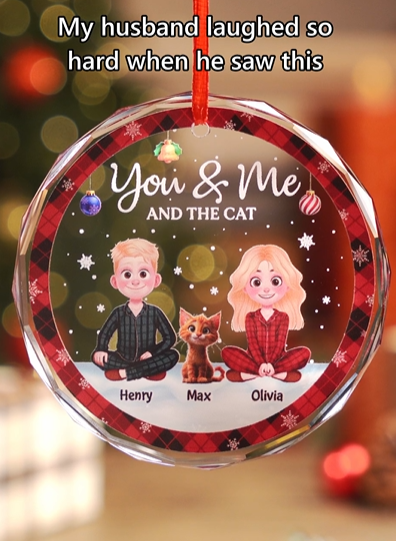 This charming couple with cat ornament is the perfect way to showcase both your love story and your furry friend during the festive season. Each piece can be customized with names, dates, or character illustrations to reflect your real-life family. Crafted from high-quality glass, the ornament brings a timeless, elegant touch to Christmas décor while celebrating the bond between couples and their cats. A thoughtful choice for anniversaries, weddings, Christmas, or even as a new home gift, these glass cat ornaments Christmas are among the most heartfelt gifts for couples.