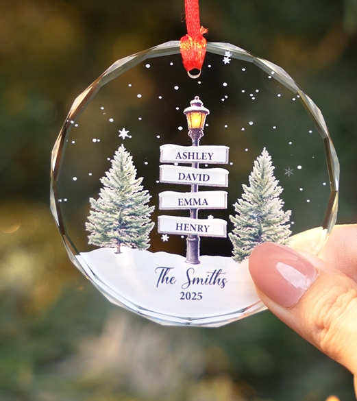 Featuring a custom family street-sign design personalized with your family’s names, this ornament transforms cherished connections into a timeless holiday keepsake. Ideal for parents, grandparents, couples, blended families, or anyone proud of their family story, it’s a thoughtful choice for Christmas gifting, yearly traditions, housewarmings, or creating a matching ornament set for everyone. Elegant, sentimental, and designed to last, it stands out among the most beloved personalized Christmas ornaments and makes one of the best personalized Christmas gifts for family.