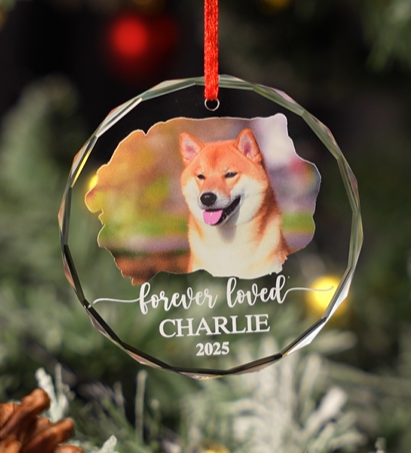 Honor the memory of your beloved pup with our elegant glass photo ornaments, a heartfelt way to cherish your dog’s spirit year after year.