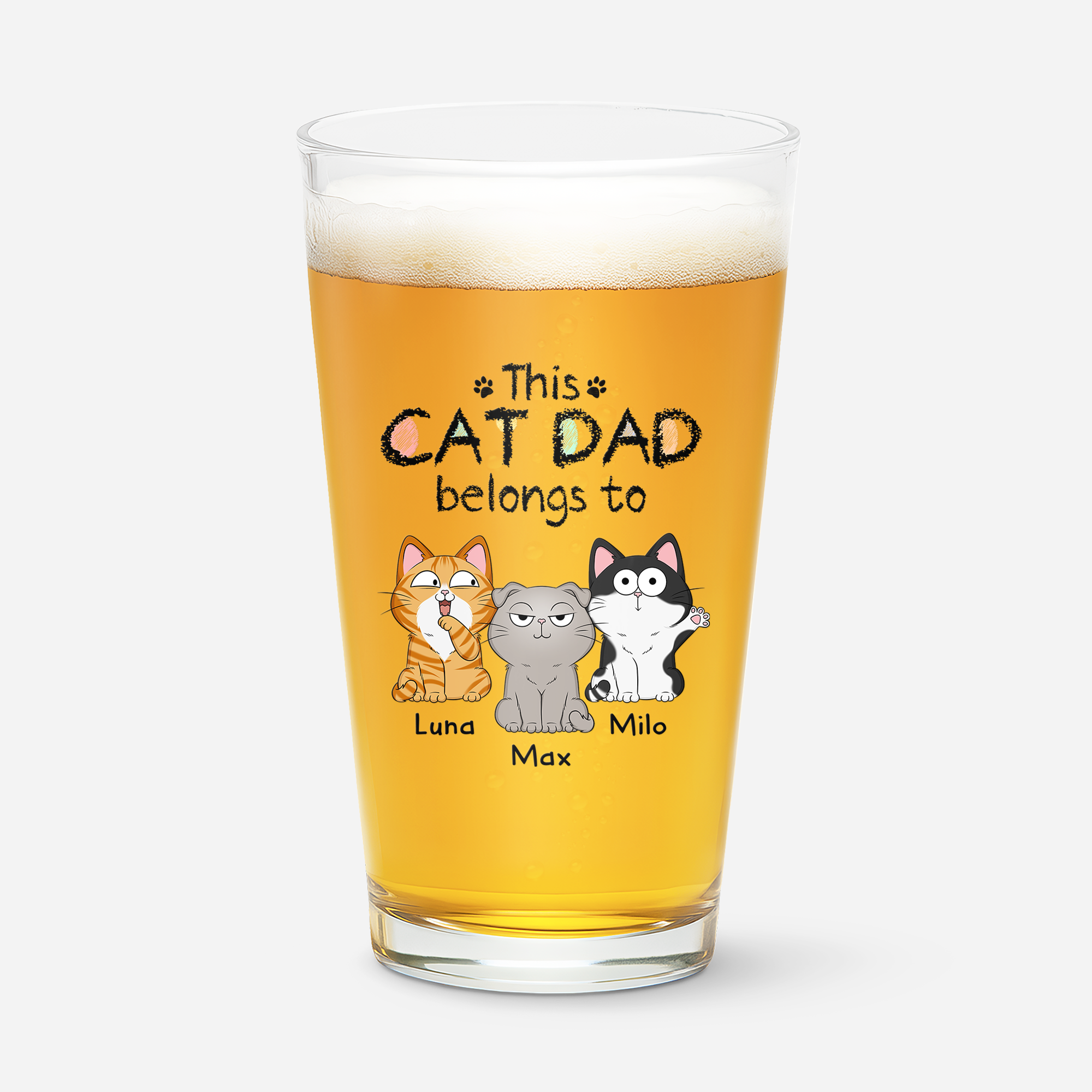 Personalized Gifts for Cat Lovers - Cat Dad Beer Glass