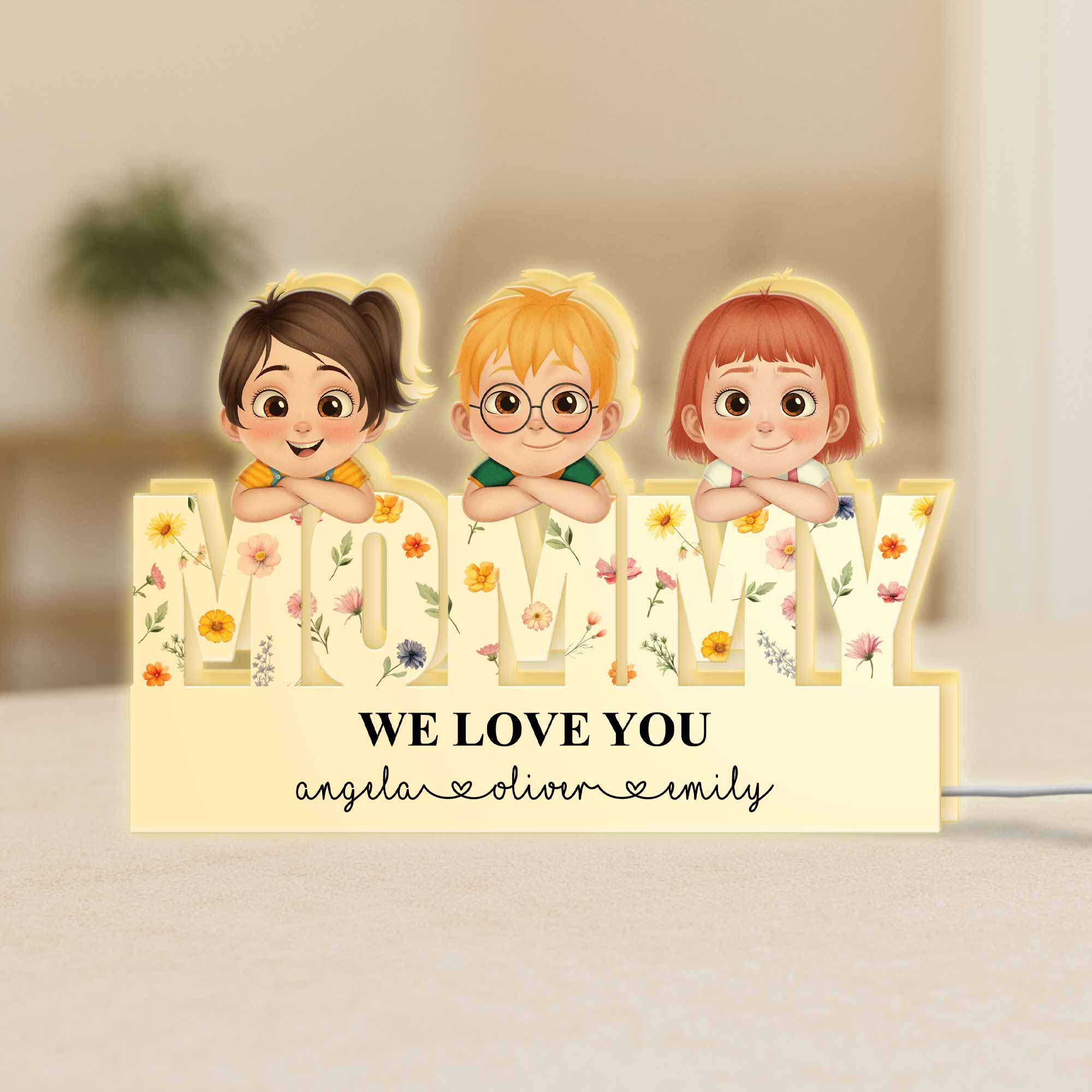 This custom light box turns love into art, making it one of the most touching personalized gifts for mom. Each piece is customized with kids’ names and illustrated character designs that resemble her real-life little ones—hairstyles, outfits, and details included. Crafted with care, it emits a warm glow that adds emotional warmth to any space, whether displayed in the living room, bedroom, or office. Perfect for Mother’s Day, birthdays, Christmas, or “just because,” this light box is a daily reminder of how much she’s loved.