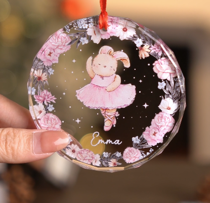 Delicately crafted from high-quality glass, this personalized Christmas ornament captures the grace and joy of ballet in a charming rabbit dancer design. Personalize it with your child’s name and choose from beautiful background patterns to create a one-of-a-kind treasure they’ll cherish for years. Ideal as a Christmas gift for kids, it’s perfect for little dancers, ballet enthusiasts, or any child who loves whimsical holiday décor. Hang it on the tree or gift it as a heartfelt surprise to make their Christmas sparkle a little brighter.