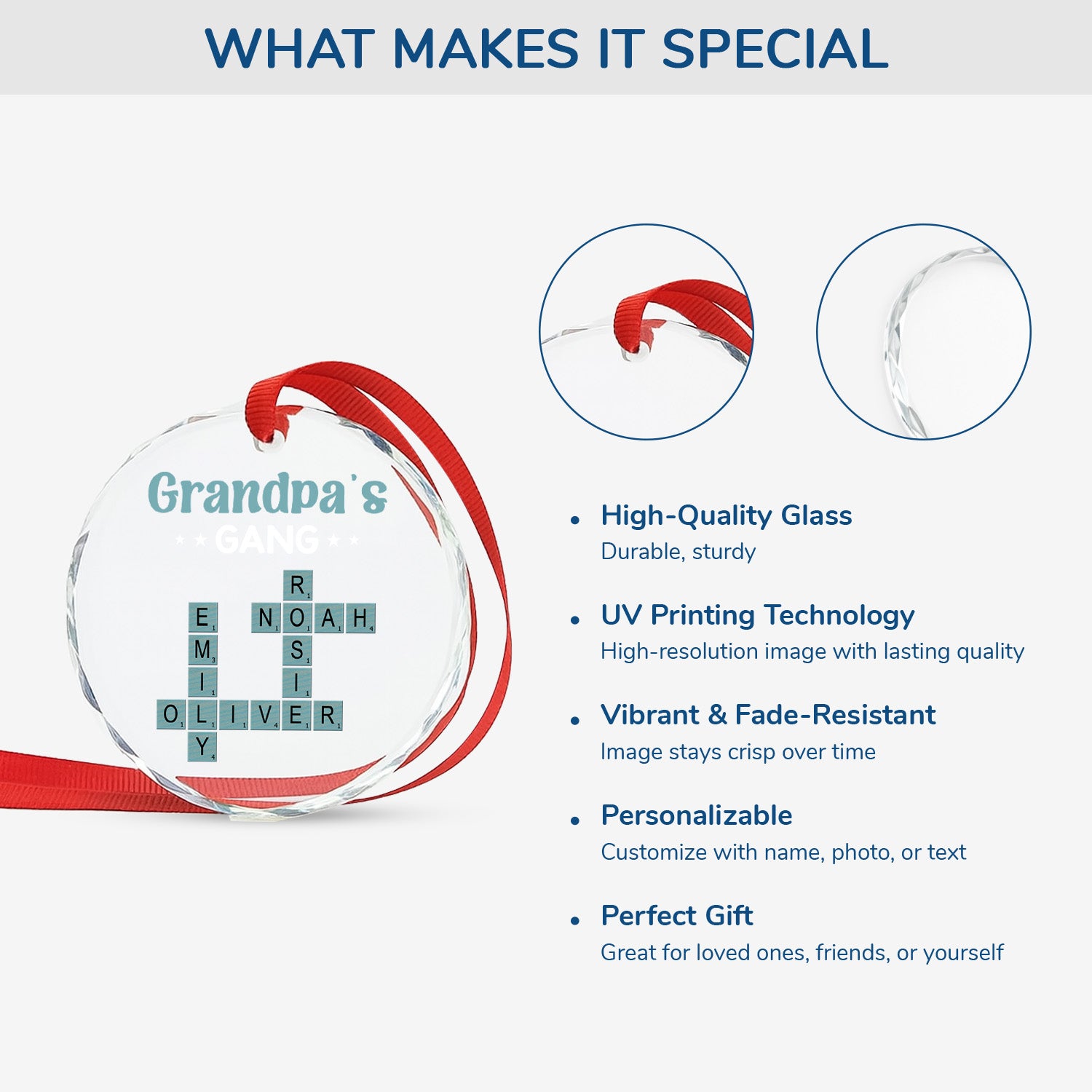 Personalized Glass Ornaments - Crossword Gifts for Grandpa