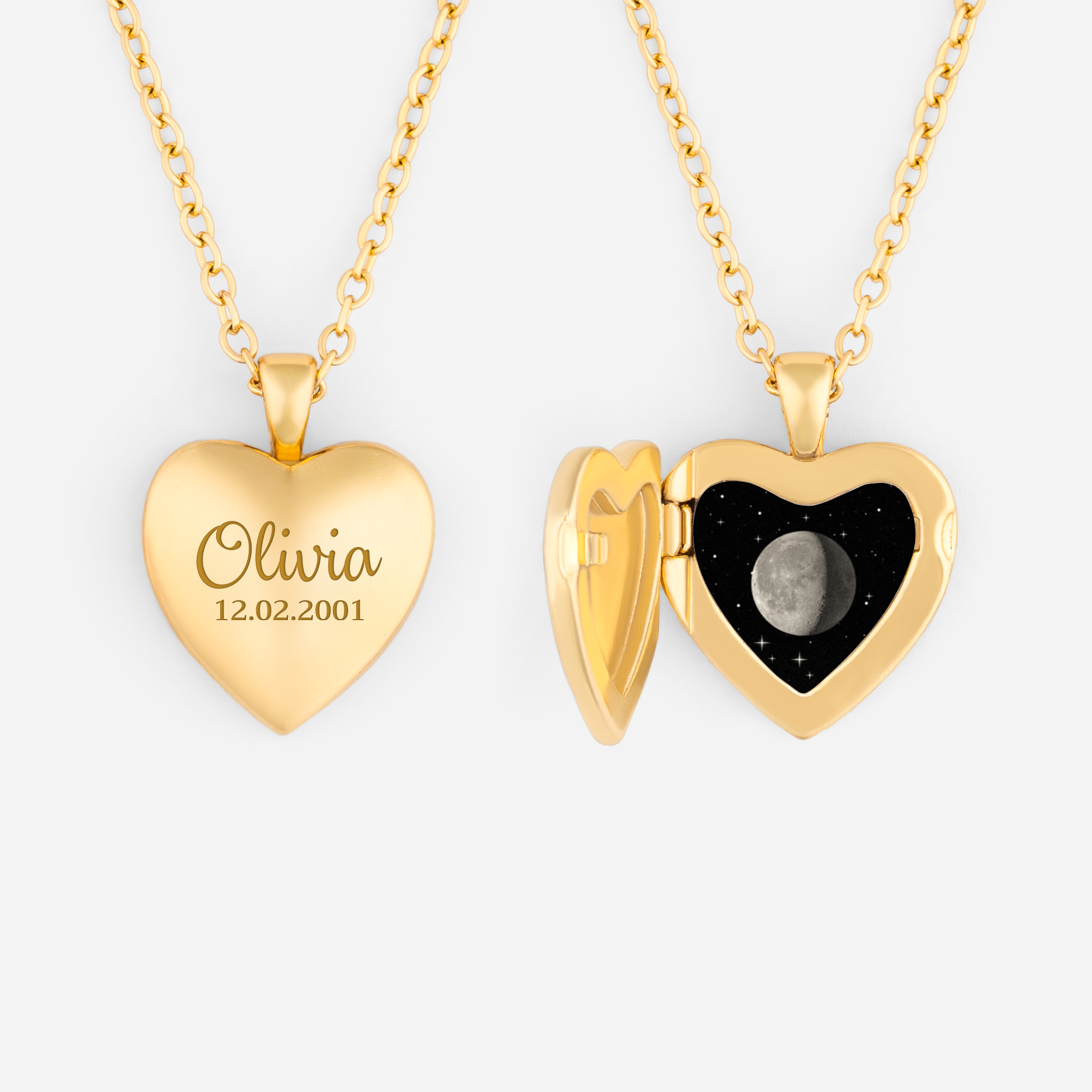 Personalized Moon Phase Necklace Heart Locket - Birthday Gift for Her