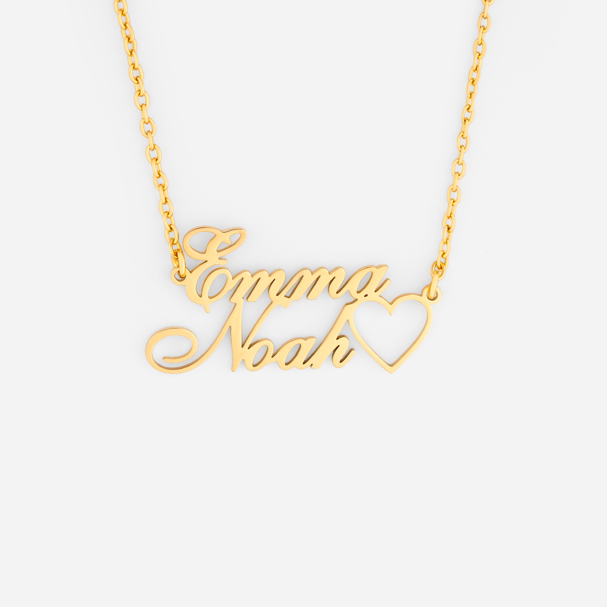 Personalized Two Name Necklace with Heart - Gifts for Him/Her/Couples