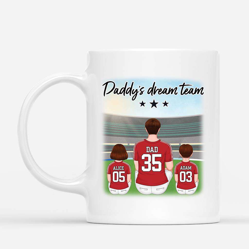 This custom mug turns coffee time into match time with a heartwarming design featuring a soccer field background and personalized characters of Dad and his kids wearing soccer jerseys. Each figure can be customized with names, hair styles, outfits, and jersey colors—creating a truly one-of-a-kind keepsake that celebrates family teamwork. Crafted from durable, high-quality ceramic, this mug is both microwave- and dishwasher-safe, perfect for daily use or display. Ideal for Father’s Day, birthdays, Christmas, or post-game celebrations, it’s the ultimate Daddy’s Dream Team gift for soccer-loving dads.